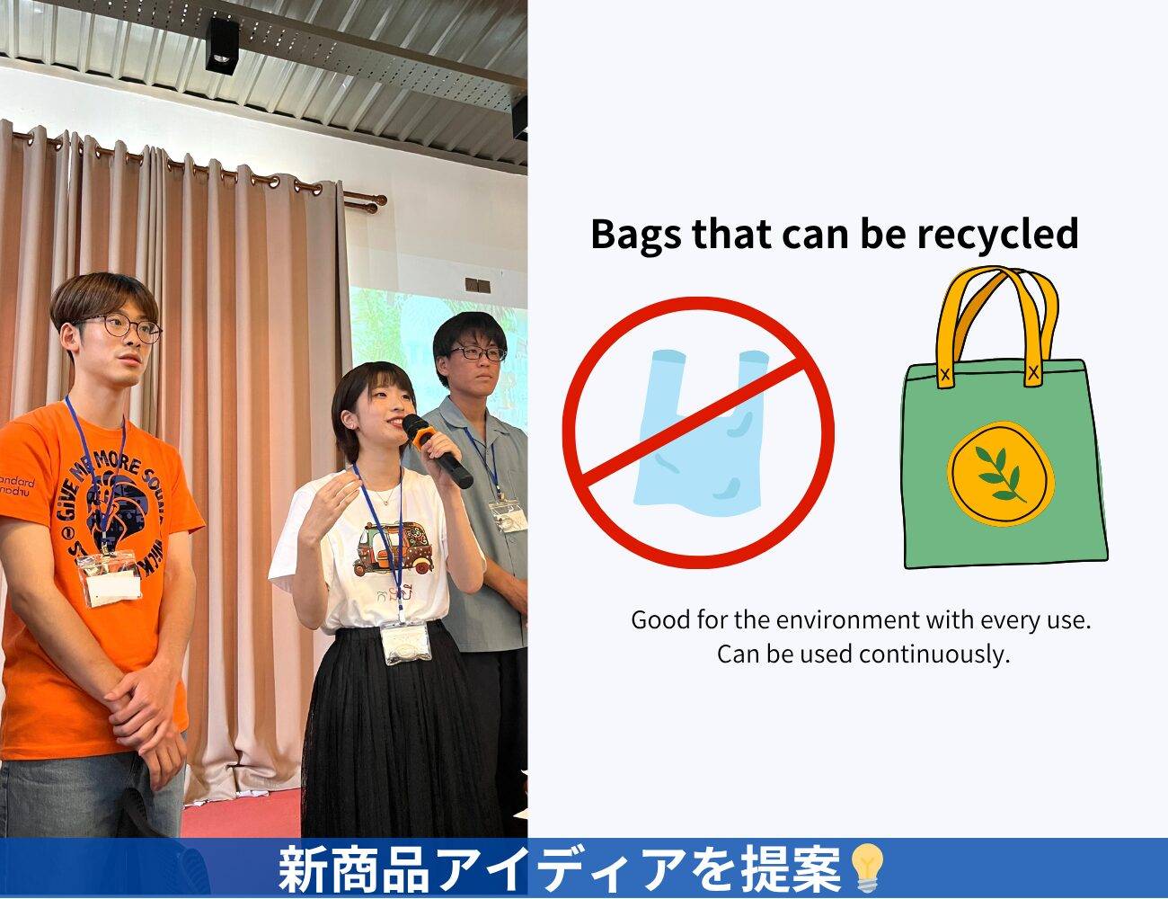 | 🏢企業概要 | 捨てられるレジ袋をアップサイクルし商品をつくる 貧困層の女性の方々を雇用し、貧困支援にも取り組む |