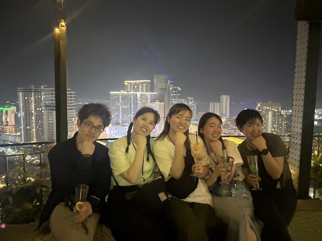 このインターンシップは最終日のフィードバックの前にも自分自身と向き合う時間がたくさんあります。事前学習の自己分析講座、9日間毎日1日の終わりに記入する日報、などカンボジアに行く前から日本に帰ってきた後まで何度も自分の強み、弱みと向き合います‼そして、その強み、弱みを共有し、素の自分で過ごせるグループのみんながいてくれたことでより自分を変えられたのだと思います。