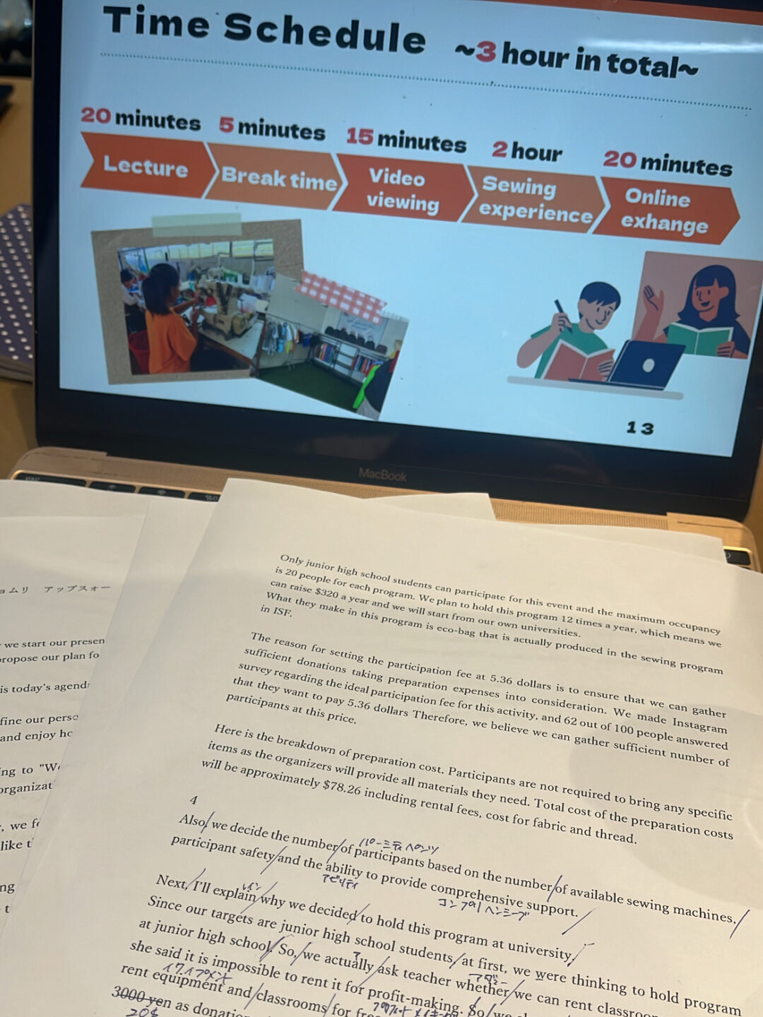 他にも、英語で翻訳が必要な時はあさみさんが日本語に翻訳してくれたり、資料作成時も英訳があっているか確認をしてくれたりもしました!英訳は英語が苦手な私にとってすごく大変でしたが、グループのみんなと一緒に取り組んでいることで諦めずにやりきることができました。