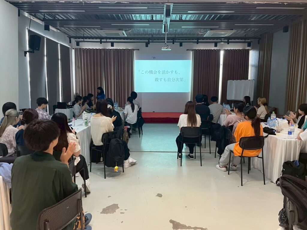し合い 1 からチャリティアイデアを企画しました。最終発表後の達成感はすごく大きかったです。今考えるとみんなと敬語で話していたのがウソのよう